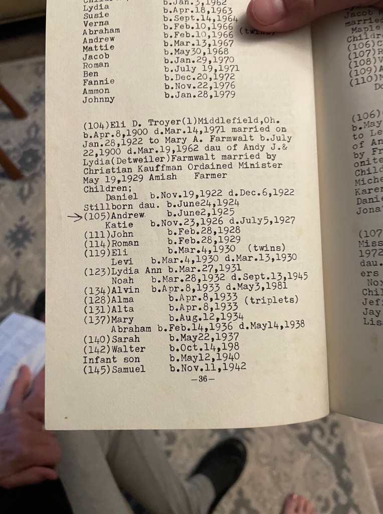 Above is Sylvia’s report card from the Troy school. Amish did not develop their own school system until the 1950’s. Amish young people attended school with Englisher’s.
