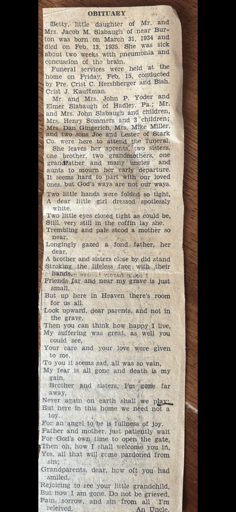 Below is the obituary of Betty–Sylvia’s sister. I received this after the book had been written. It gave me chills to read this poem.